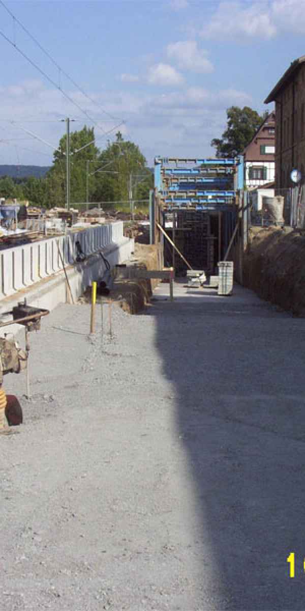 1.500 m² Straßenbau 50 m Gleisumbau inkl. Bahnübergangsbefestigung 700 m Kabelkanal 3.800 m Kabel Verlegen 30 m Stützwand aus Stahlbeton 30 m Sichtschutzwand auf Stützwand